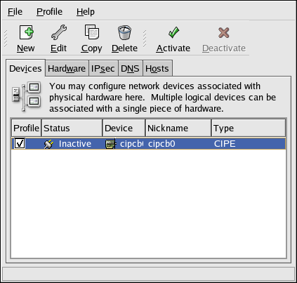 When the device is added, it is not activated immediately, as seen by its Inactive status. To activate the device, select it from the device list, and click the Activate button. If the system is configured to activate the device when the computer starts (the default), this step does not have to be performed again.