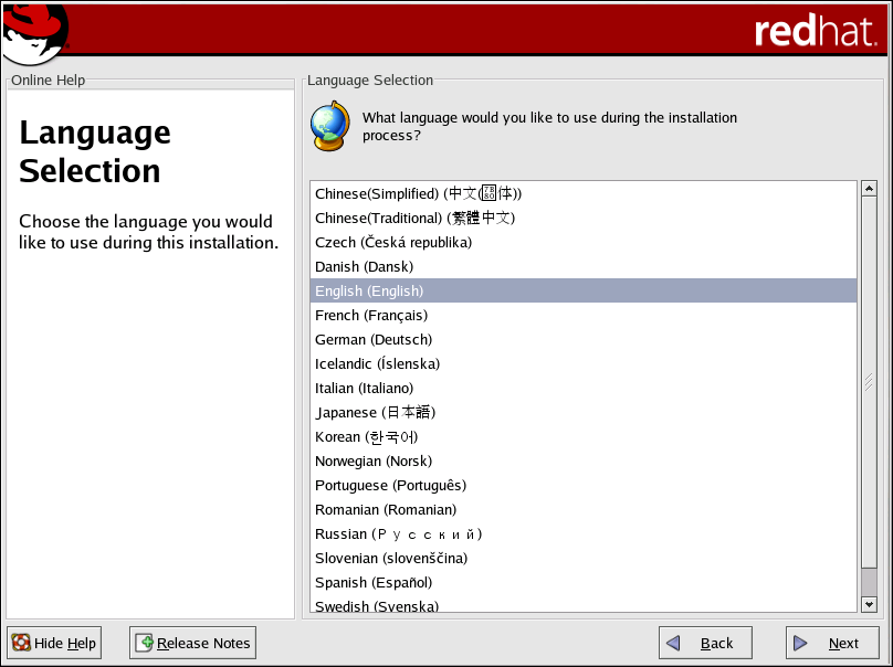 Selecting the appropriate language also helps target your time zone configuration later in the installation. The installation program tries to define the appropriate time zone based on what you specify on this screen.