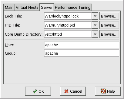 The Server tab allows you to configure basic server settings. The default settings for these options are appropriate for most situations.